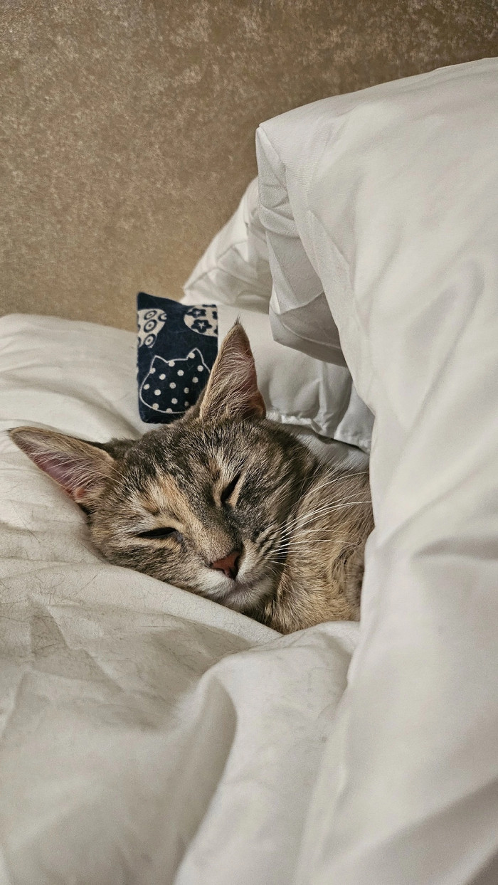 Спарта шустрая, нежная, ласковая девочка, любит сидеть на ручках. Никого не боится, пристает к другим котятам с играми. Малышка - особенная кошечка, она видит очертаниями. Но это не мешает ей нисколько.