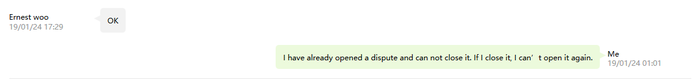 Мой ответ, что я уже не могу просто закрыть спор, так как открыть повторно уже будет нельзя и продавец согласился.