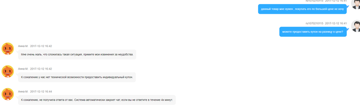 На этом моменте оператора заклинило. Отменять мне заказ не хочется, платить за него больше тем более. Далее с другой оператор предоставляет мне уже совсем другую информацию, оказывается они не могу вообще найти мой заказ в системе, т.к. было сделано слишком много заказов и мой заказ не прошел (о чем мне никто не сообщил), якобы у них не хватило товара в наличии, хотя мы то видим, что купить сейчас этот товар можно по другой цене.