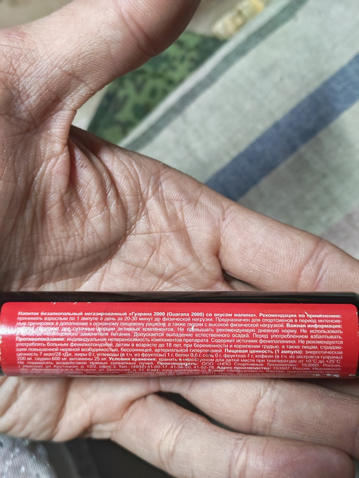 Концентрированный энергетический напиток на основе экстракта гуараны (2000 мг в порции), содержащий натуральный кофеин и витамины. Применяется в спорте для повышения выносливости, концентрации, ускорения жиросжигания, действуя мягче и дольше, чем чистый кофеин.