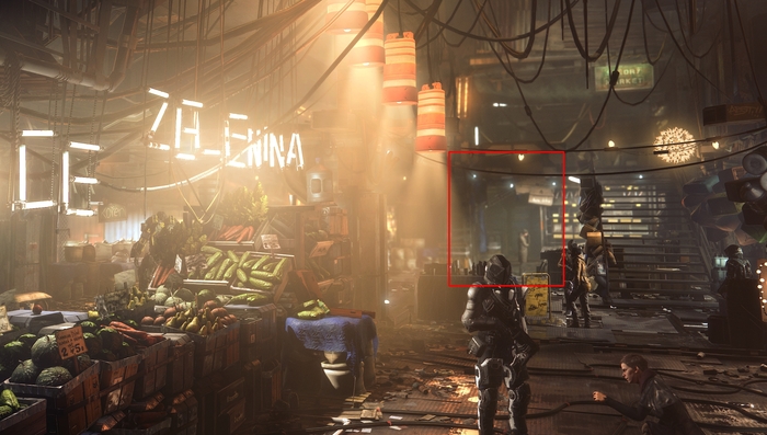 Вот так выглядит меню Deus Ex MD(2014) на полном экране 4к с максимальным сглаживанием х8 MSAA и разрешением 1280*1024