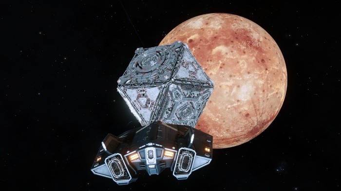Всем снова о7, команданте. Настало время уже третьей партии скринов с путешествий в элиточке. В прошлый раз я остановился на том, как я снижался к 10-й точке экспедиции DW2, находящейся в системе Bleethuae NI-B D674 на планете 2DA. На спутнике спутника газового гиганта.