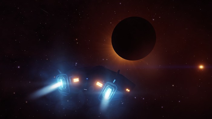 Всем о7, командиры. Давно в комментах обещал накинуть красивых скриншотов мира элитки, сделанных в ходе полётов к центру галактики, к Beagle Point и просто вне обитаемого "пузыря". Скрины всё копились и копились. Думаю, пора бы и выложить, отобрав самые сочные красоты Млечного пути) Первая партия скринов с путешествий на таком замечательном корабле, как DBE (Diamondback Explorer) - пожалуй, лучший среди дальнобойных исследователей для тех, кто пока не заработал на Анаконду за его прыжок или, скорее, Прыжок! На момент путешествия к центру он составлял 57 световых лет с инженером только на FSD.