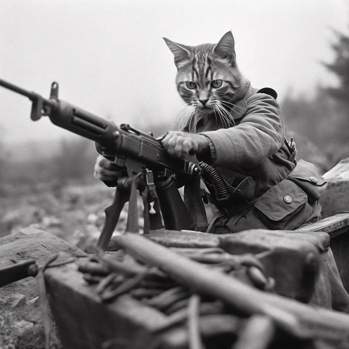 1835 mdjrny Midjourney Вторая мировая, но если бы в ней воевали кошки 2 года назад Ещё больше работ по нейросетям в Телеграм канале: MIDJOURNEY Показать полностью 19 Нейронные сети Искусственный интеллект Midjourney Арты нейросетей Кот Вторая мировая война Длиннопост 32 11 11 9 2 Ещё 0