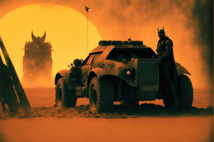 Кроссовер «Бэтмена» и «Безумного Макса» от Midjourney