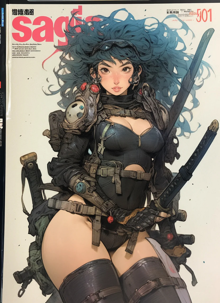 Prompt: Imagine an image of a samurai warrior holding his sword with accurate facial detail at the ready