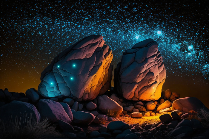 Промпт: stargazing rocks with bright dot on them / камни для наблюдения за звездами с яркими точками на них