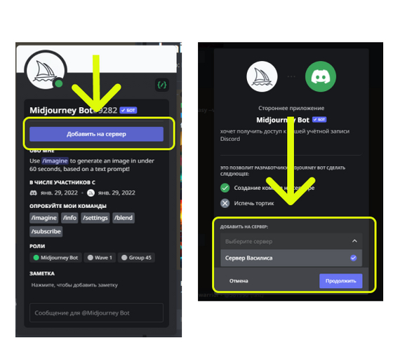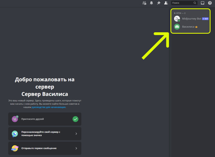 Добавляем бота Midjourney Bot в наш сервер, который создавали на первом шаге.