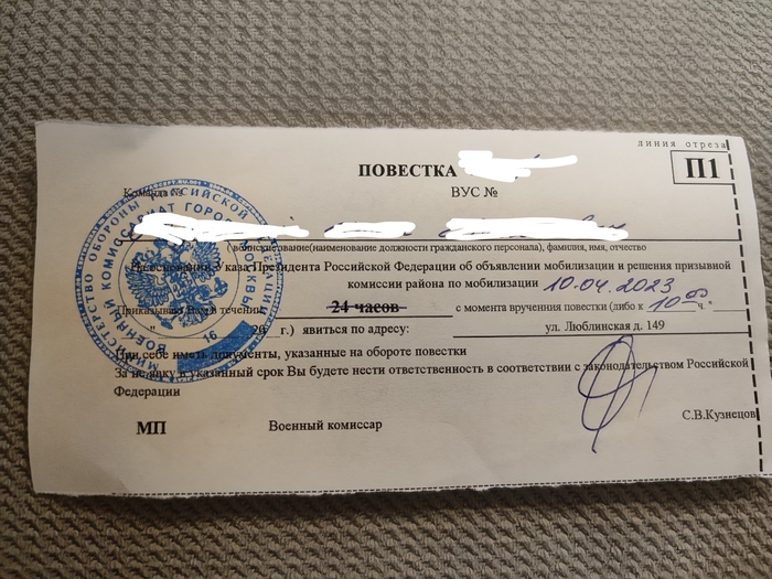 Следующий приход в четверг, так же утро-вечер, но уже с сотрудником полиции и что характерно, сами повестки носили разные люди.