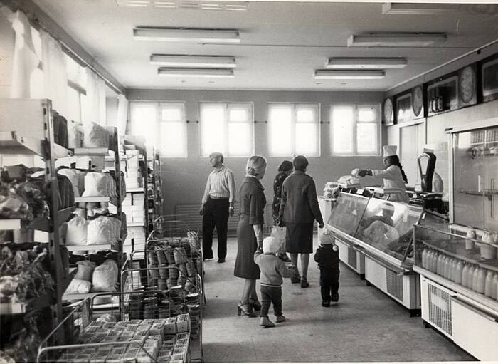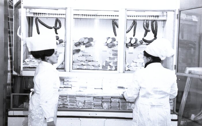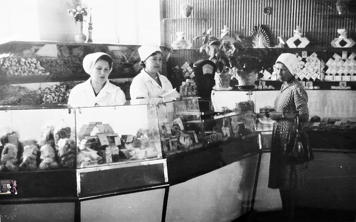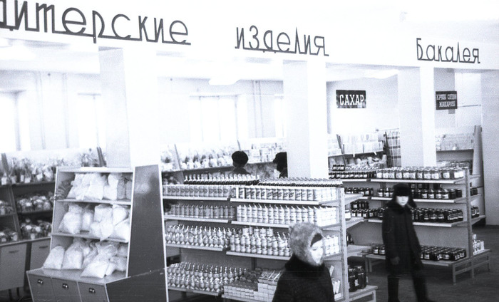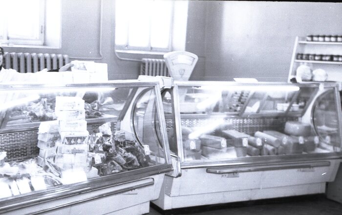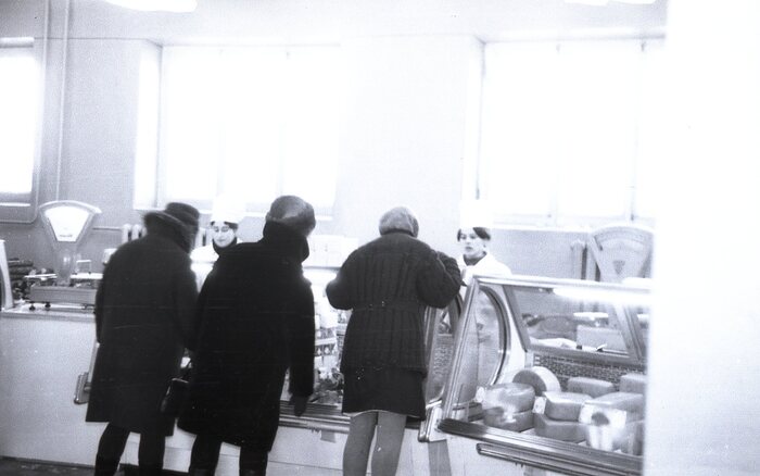Сыры. Или молочный магазин, или отдел в Гастрономе. У женщины плюшевая шубка, а значит на дворе 70-е.