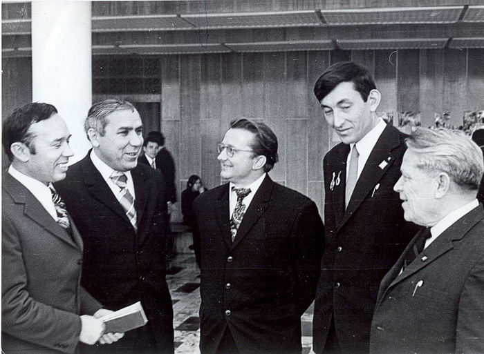 На фото ниже - участники VII городской отчётно-выборной партийной конференции: слева направо - 1. Андреев Евгений Яковлевич. 2. Закирзянов Ильдус Борисович – председатель профкома КАМАЗа. 3. Ширманов Вячеслав Степанович- начальник СМУ КАМАЗа, 4. Гарифуллин Варис Вакильевич - водитель транспортного управления КАМАЗа. 5. Сарапулов Анатолий Васильевич – секретарь партийной организации жилищно-коммунального управления КАМАЗа.