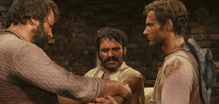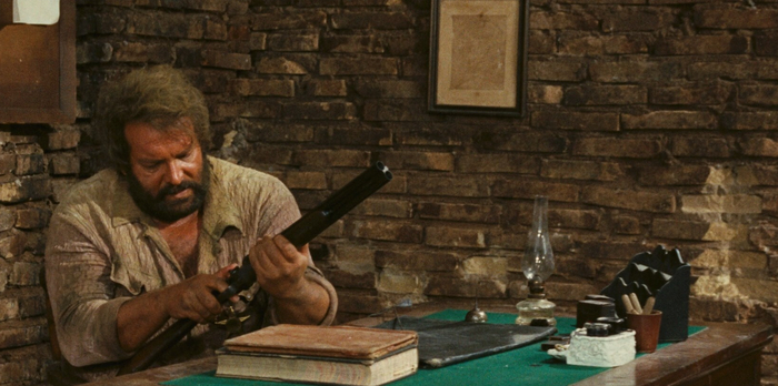 Забавно, что Теренс Хилл играл в 3-х фильмах на втором плане всегда разных персонажей))