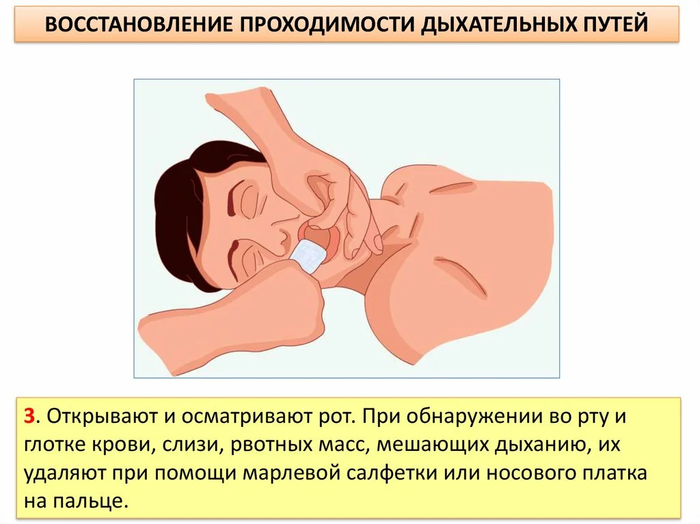 Как правильно. Чтобы освободить дыхательные пути, нужно всего лишь повернуть их владельца набок. Если же есть подозрение на то, что ворочать потерпевшего нельзя (скажем, по причине всё того же повреждения позвоночника), то хотя бы запрокиньте голову назад, подложив что-то мягкое под шею. Кстати, тот же алгоритм актуален и по отношению к дремлющим в синем угаре гражданам, которые могут подавиться либо собственным языком, либо рвотными массами.