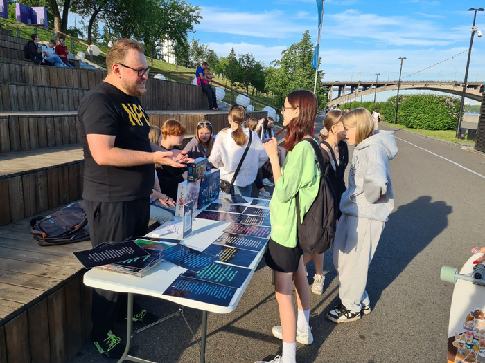 Чтобы податься на грант, моей задачей было провести 10 муниципальных некоммерческих мероприятий за лето. Мы так и сделали . Нам выделили место на центральной набережной города в субботу и воскресенье, где мы и развернули свою лабораторию загадок.