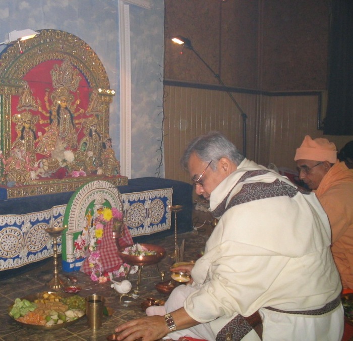 Дурга-пуджа длится пять суток и на исходе пятого дня завершается погружением в воды Ганги той статуи, перед которой совершалось почитание. В индусских религиозных празднествах используются два типа священных изображения: постоянные и временные. Постоянное изображение божества, изваянное из мрамора или другого прочного камня, помещают в храм, где после освящения перед статуей ежедневно совершается ритуальное почитание. Изображение временное, вылепленное из глины, используется только на время соответствующего празднования, после окончания которого его погружают в ближайшую реку, озеро или в море.