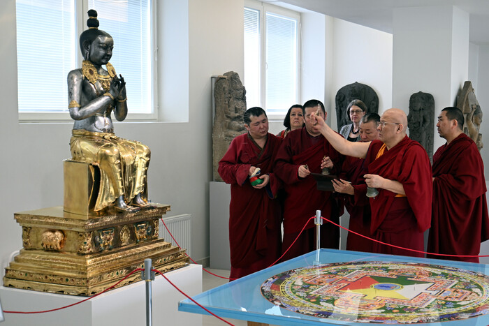 «Мы представляем замечательную скульптуру, вышедшую из реставрации. Это часть нашей общей музейной миссии: сегодня музей ведёт диалог Востока и Запада. Сегодня я объявляю начало нового этапа нашей буддийской программы, которая состоит из ряда частей. Мы делали выставки в Улан-Удэ – и планируем большую выставку, посвященную 110-летию Иволгинского дацана. В этом году мы делаем большую выставку Рериха, причем она будет посвящена как раз «восточной» части его жизни и творчества – и это напрямую связано с Майтреей. Также мы готовим – совместно с Театральным институтом – очередную театральную мистерию, посвящённую нашей запасной галерее Востока на третьем этаже Зимнего дворца, и многие её сцены будут связаны с буддизмом и буддийским искусством», – сообщил директор Эрмитажа Михаил Пиотровский.