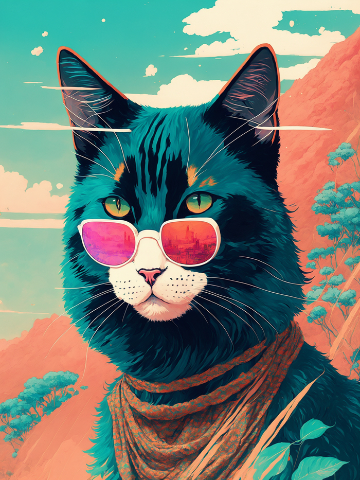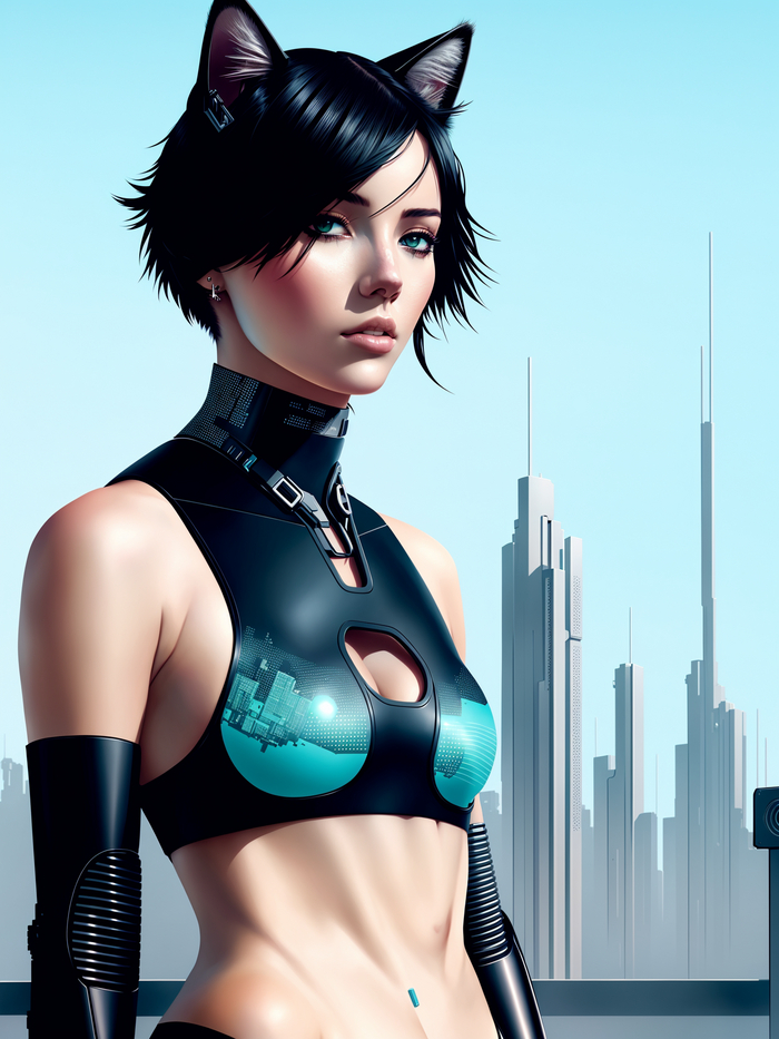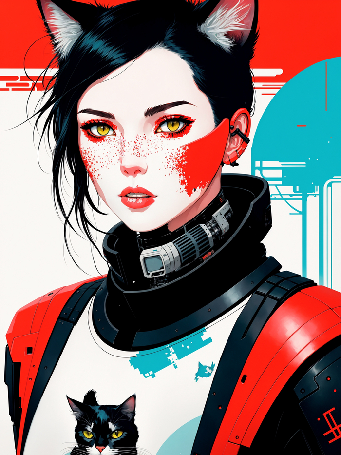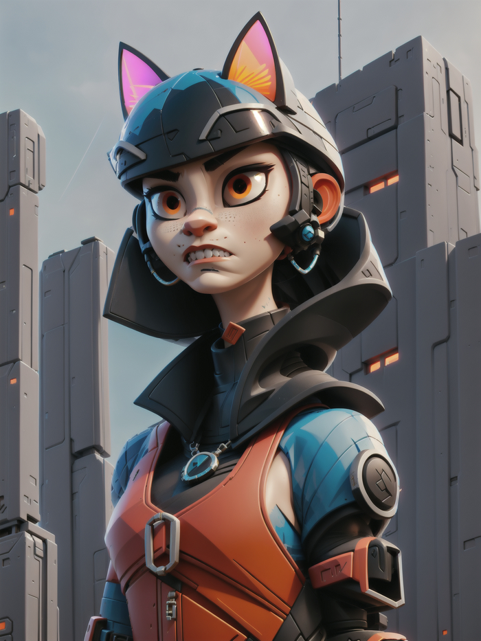 a portrait of a cat character in a scenic environment by conrad roset, hyperdetailed, cyberpunk, cool, cybernetically enhanced, trending on artstation