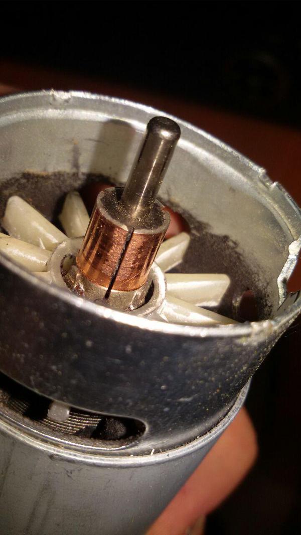 кишков как таковых не много. предположительно причины непонятного сияния в районе коллектора и жуткая вонь - засорение пазов между коллекторных пластин. разбираем движитель, вот: