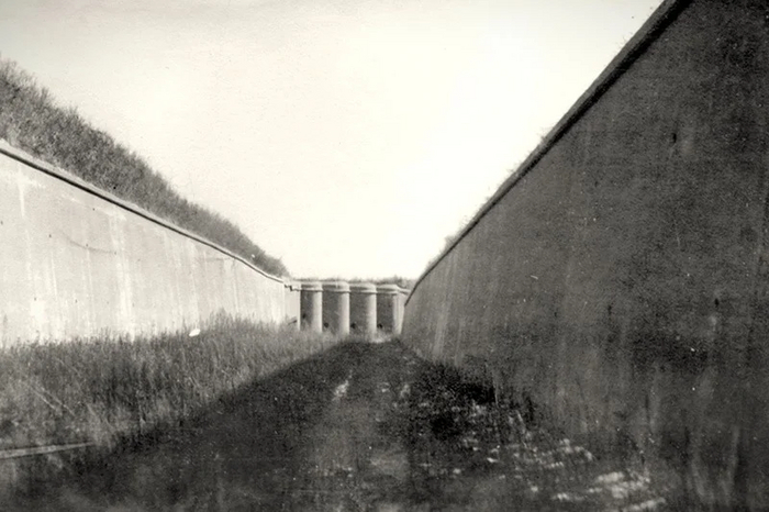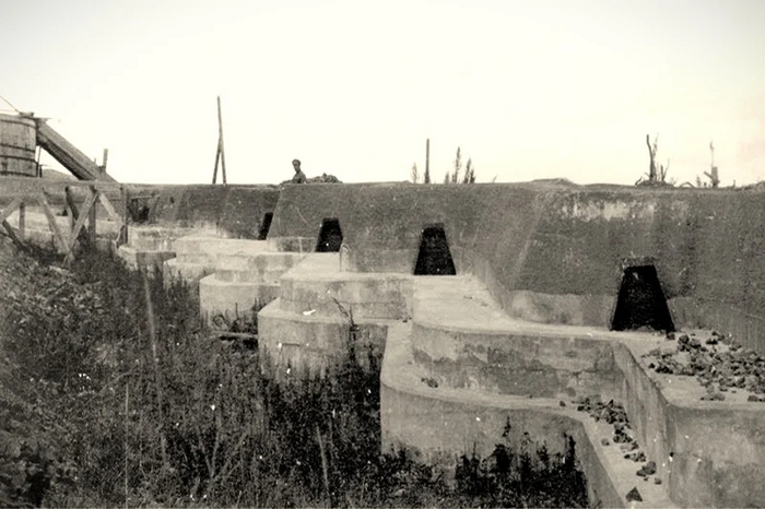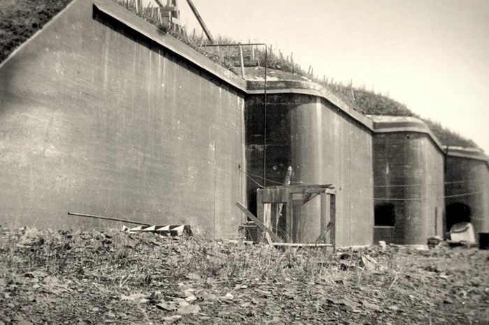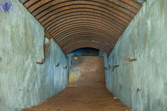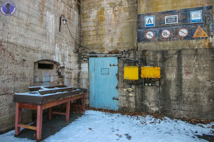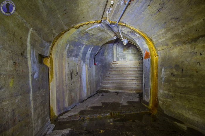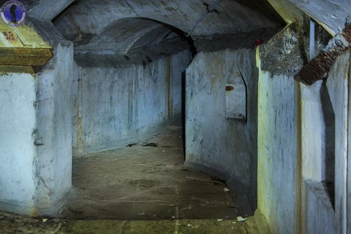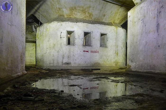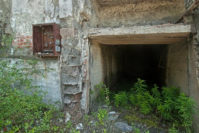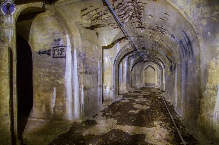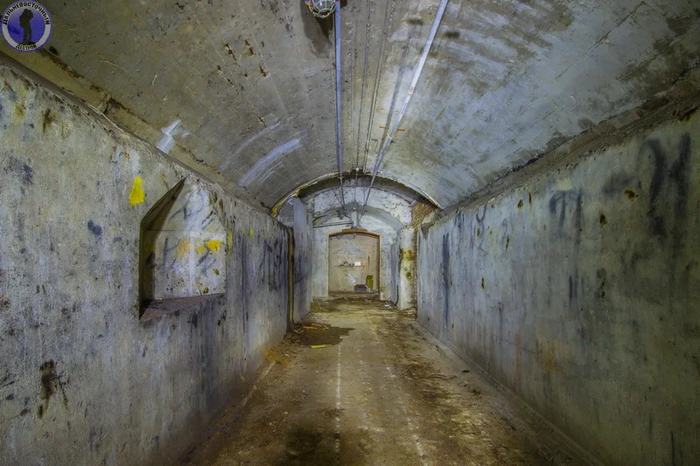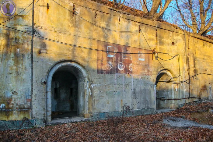 Убежище для выкатных орудий. В позднесоветское время военные заложили часть проёмов, а на некоторые установили гермодвери различных моделей.