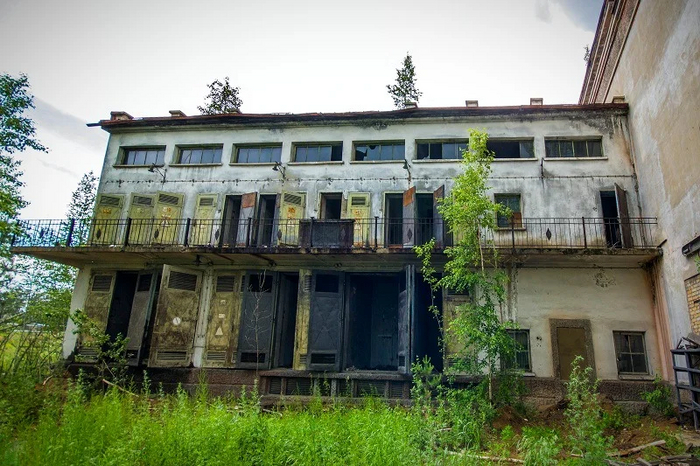 К зданию радиоцентра мы вернёмся чуть ниже, а сначала заглянем в отдельное большое здание трансформаторной подстанции, обеспечивавшей электроэнергией мощные передатчики радиоцентра.