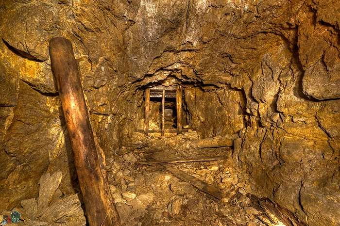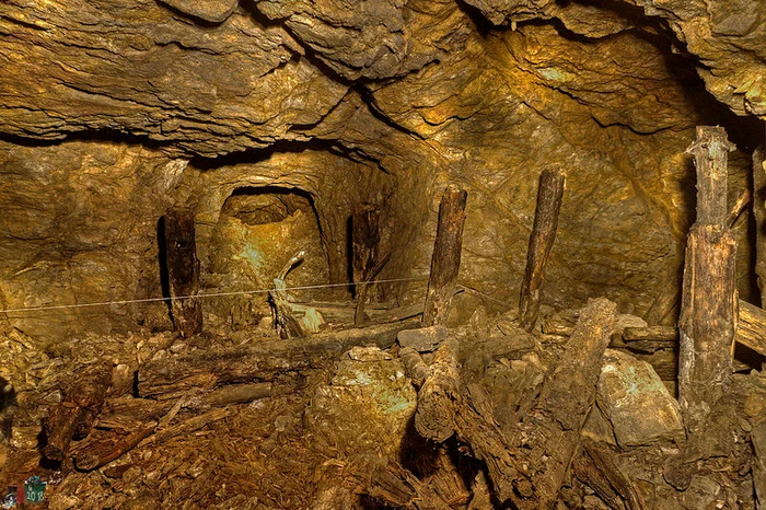 Не смотря на обрушенные крепи, порода в этой штольне довольно крепкая и пройденная практически без опасных разломов.