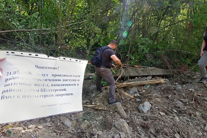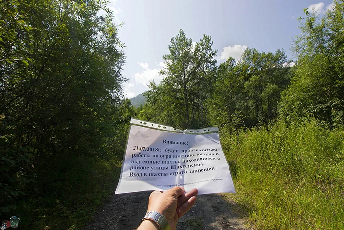 Уже на подходе к КПП мы заметили одно из множества встреченных позже объявлений, гласящем о том, что 21 июля будут производиться работы по засыпанию порталов штолен. На часах 24 июля и мы резко падаем духом и уже без такого задора топаем через ворота.