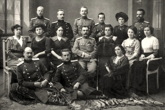 Фотография из одной из книг серии "Владивостокская крепость" с главными военными инженерами, начальниками строительных участков и авторами проектов фортов Северного Отдела Обороны Владивостокской крепости.