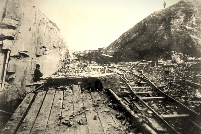 Дорога на мраморный карьер "Стрелка", где добывали мрамор для выше упомянутого вокзала.