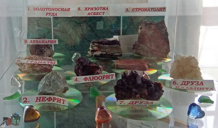 В здании вокзала выставлены некоторые полезные ископаемые, добываемые в этих местах.