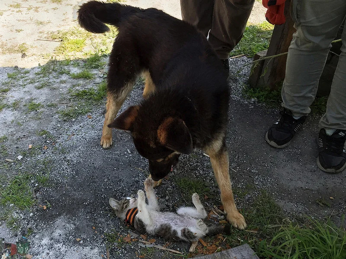 На КПП кстати был довольно дружелюбный и игривый пёс, лучшим другом которого был чумазый котёнок с которым они постоянно игрались.