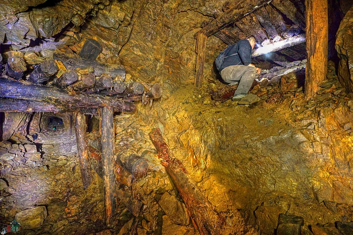 Нам на встречу вышел охранник и сказал, что не все штольни успели засыпать и указал нам нужное направление к ещё не засыпанным порталам. Также поведал, что решение засыпать штольни было принято для воспрещения входа любопытным туристов типа нас в обвалоопасные подземелья, после сюжета про детей не так давно застрявших в Тайландской пещере во время подъёма воды.