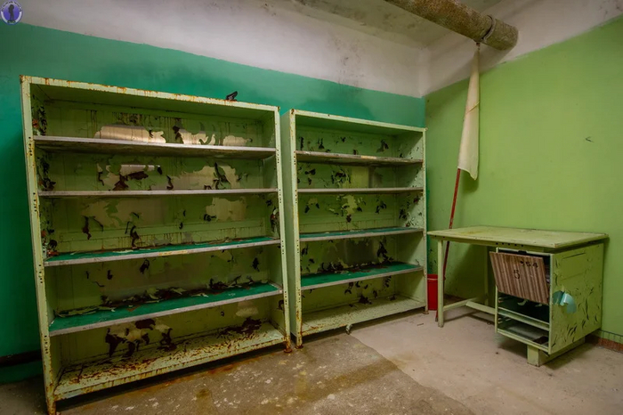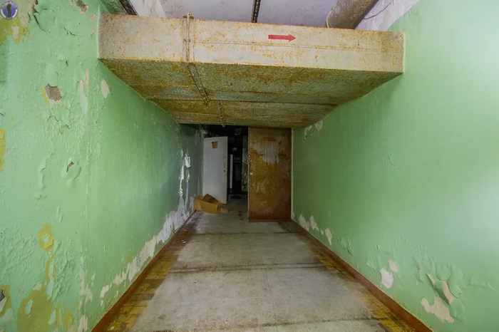 Подземный объект тоже пребывает далеко не в лучшем состоянии, из-за постоянной сырости стены покрылись грибком и плесенью, на полу лёд.