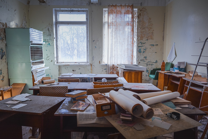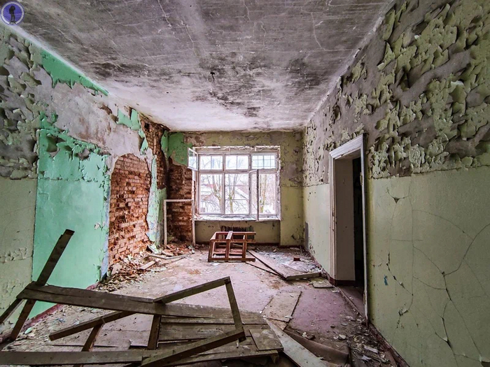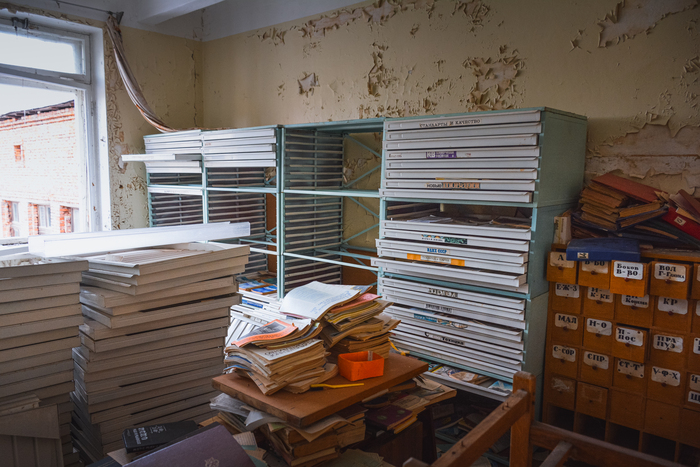 Но сначала заглянем в помещение за гермодверью у входа. Сложно сказать что в нём находилось изначально, но судя по сваленным остаткам аппаратуры в дальней комнате, предположим что там был склад ЗИП.