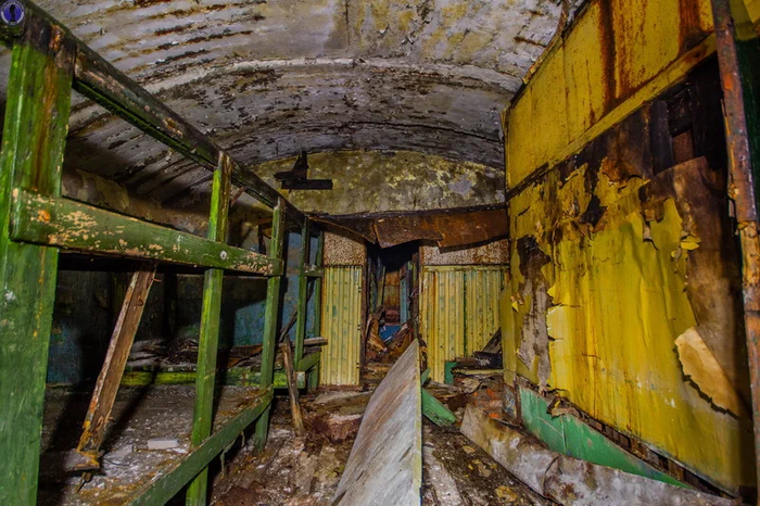 Кстати это помещение имеет сводчатый потолок, аналогичный постройкам 616-го отдельного берегового ракетного полка, что также базировался на острове между двух позиций ЗРК ПВО.