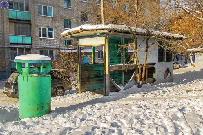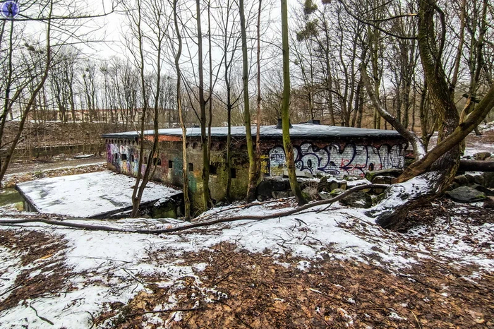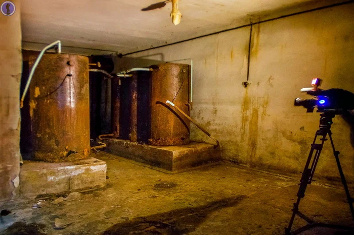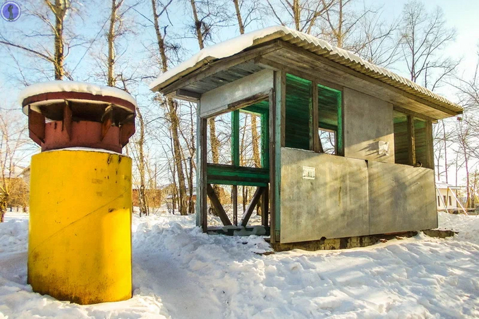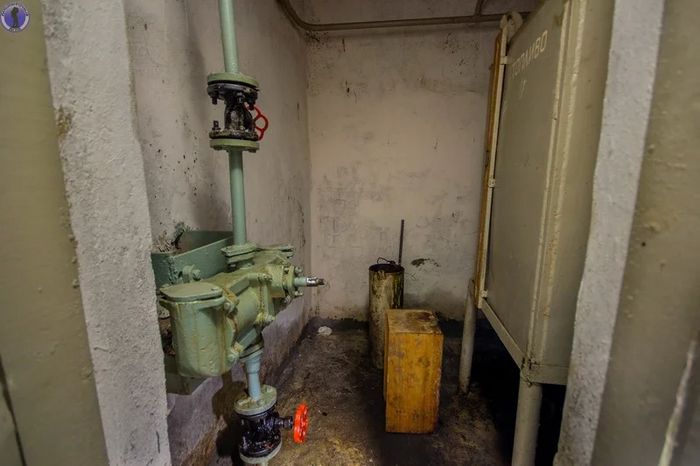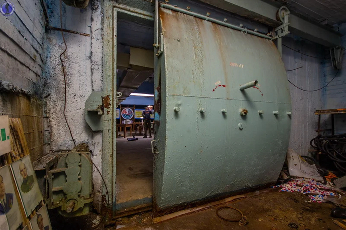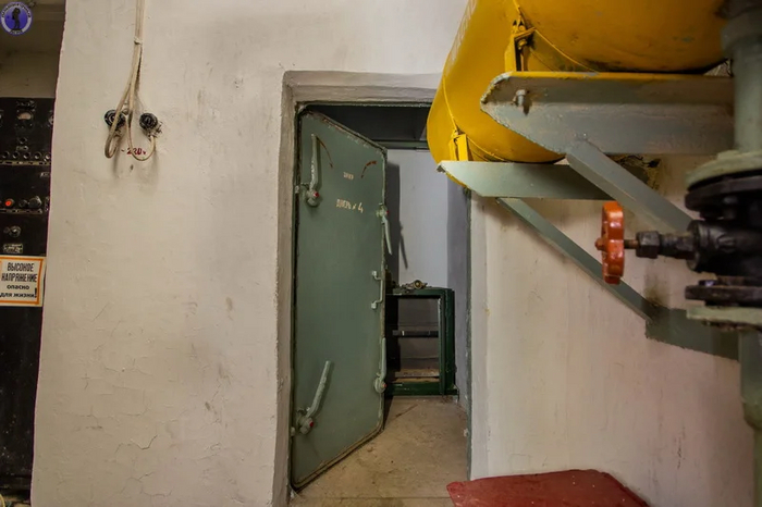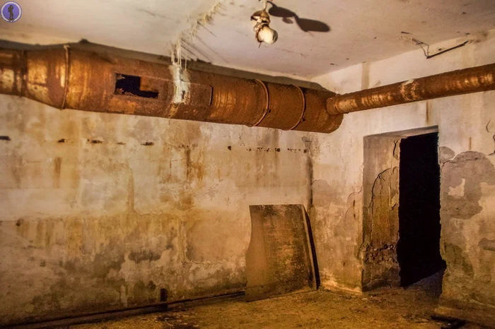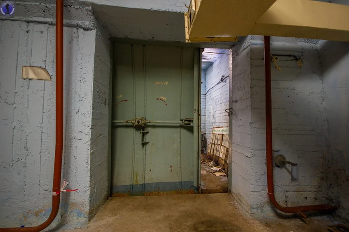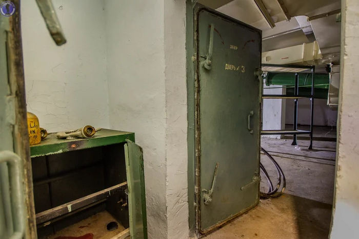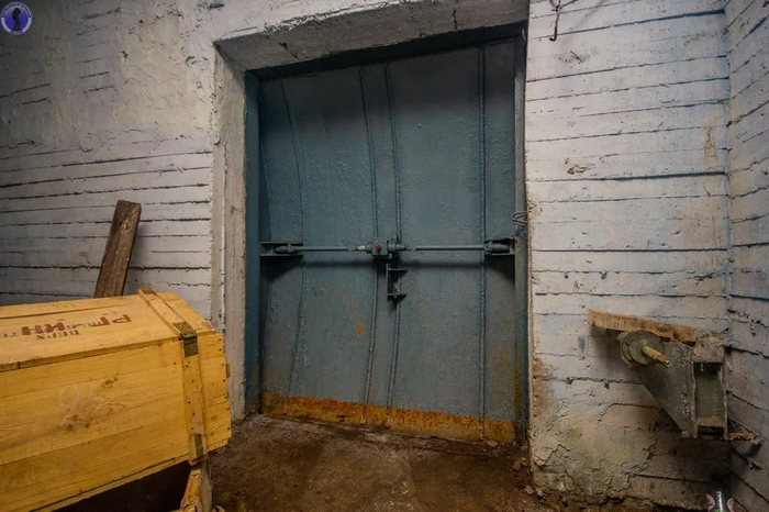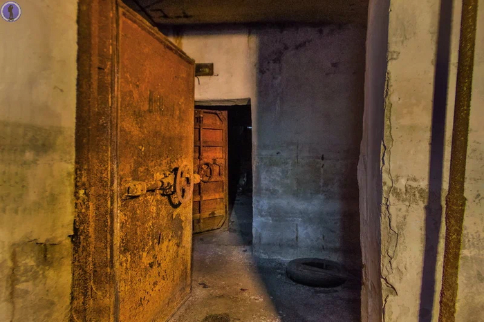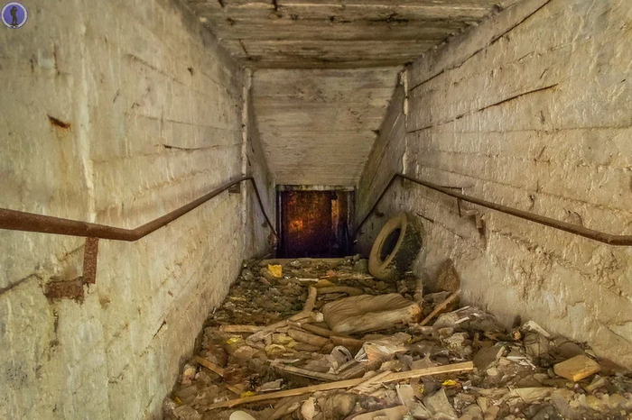 На котором сохранилась старая гермодверь, ведущая в подходной сквозник, видимо одновременно являвшийся убежищем.