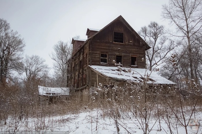 Сквозь деревья проступают очертания массивной трехэтажной постройки, цели нашего визита. Заброшенная водяная-мельница словно одинокий «Дом-Призрак», «затерявшийся в лесах» Приуралья.