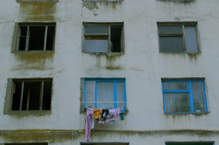 Как раз останавливаюсь напротив нашего бывшего домика: без крыши, только стены, две пустых оконных глазницы.