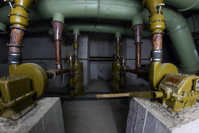 Из фву выходит много гермофорточек, которые в итоге соединяются в один канал и через фильтр грубой очистки выводятся на улицу. Так же можно обратить внимание, что столбиков фильтров несколько меньше чем должно быть. Возможно при реконструкции посчитали что в убежище не стоит набивать много людей поэтому и на системе очистки можно сэкономить. А возможно поставили более современные фильтры.