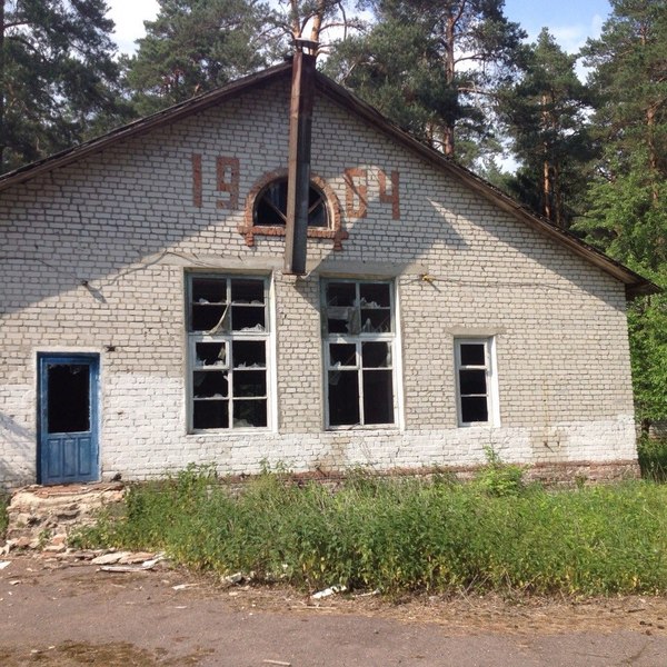 На подходе из далека видны признаки заброшенности: граффити, заколоченные рефленкой дверные проемы и выбитые витрины: