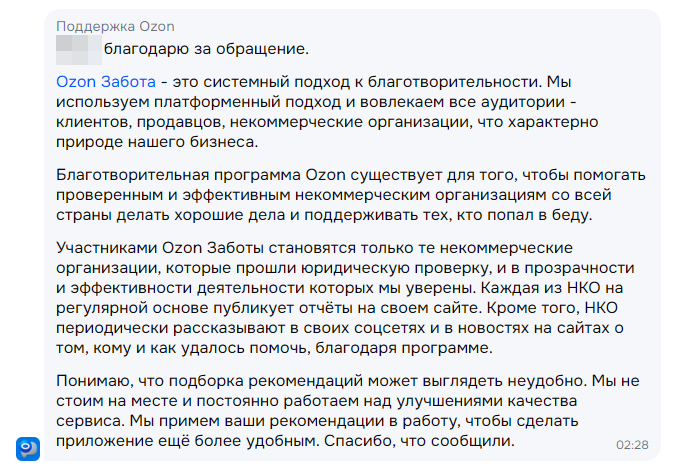 первый ответ тех. поддержки @Ozon, с откровенной и наглой ложью - это вы сами смотрите блохастых тварей, вот вам они и лезут в ленту. мы - не при чем!