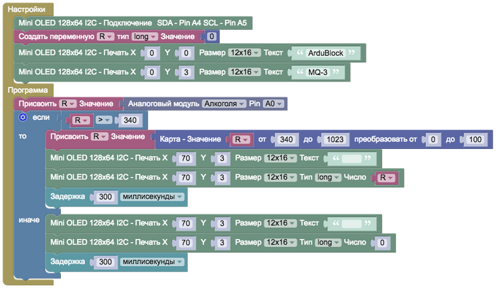 #ArduBlock 2.0 - MQ-3 Датчик паров алкоголя, Алкотестер на Arduino