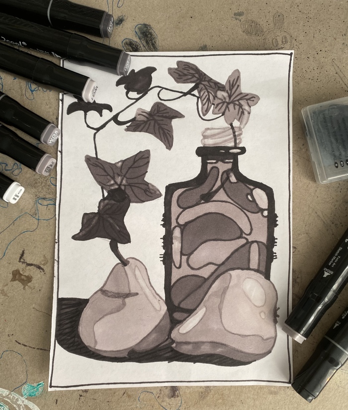 Все это я пытался набросать на бумаге. Получались жуткие линии, похожие на что-то паразитно-инфекционное. Поэтому обращаюсь к вам - как иначе можно все это скомпоновать так, чтобы картина получилась красивой?
