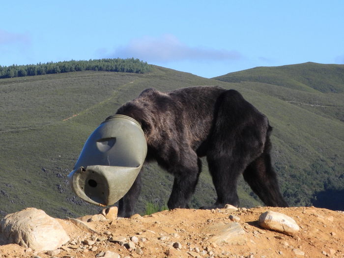 В Испании спасли медведя, чья голова застряла в пластиковой бочке