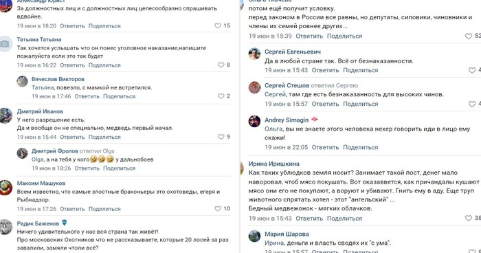 «Так-то сезон охоты осенью на медведя открывается и это хороших денег стоит — решил чел нахаляву поохотиться» (орфография и пунктуация комментариев сохранены - Авт.).