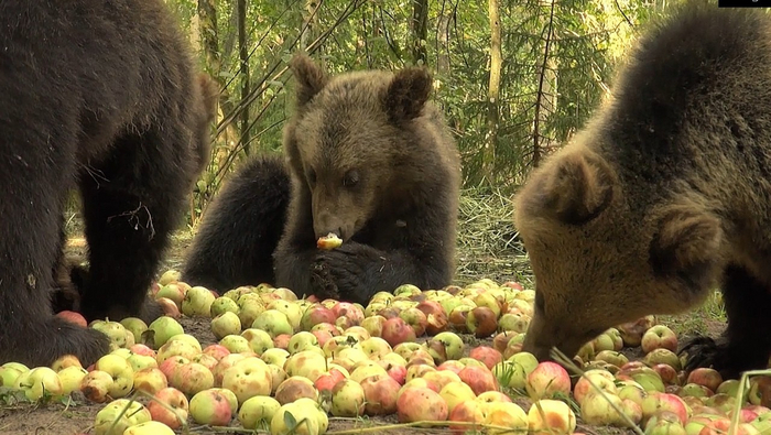 Центр спасения медвежат-сирот в Торопецком районе рассказал и показал, как их воспитанники наедают жирок перед долгой спячкой. Медвежат кормят вкуснейшими яблоками. Малышня очень любит данное лакомство и съедает все до последнего кусочка.