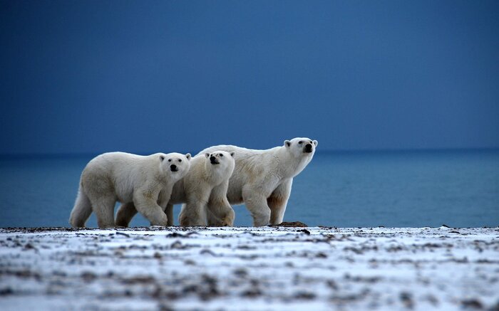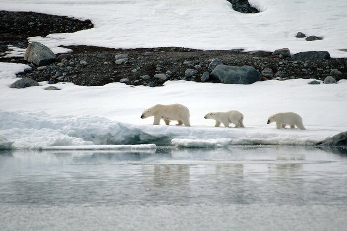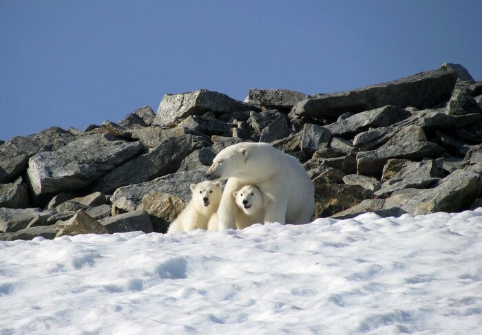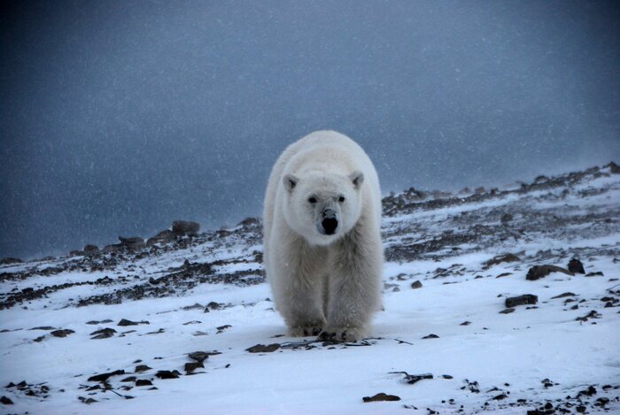 Племянница Бобби позднее видела того же медведя, катающегося на дрейфующей льдине недалеко от берега. В этом районе ещё холодно и много снега, так что арктическим животным есть чем заняться.