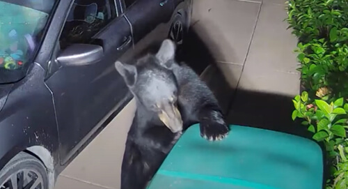 Когда женщина по имени Ана получила сигнал с датчика движения видеокамеры, она поняла, что к ней в гости пришли медведи. Зверей очень заинтересовал мусорный бак, но он оказался закрыт. Даже повалив контейнер, мишки не смогли добраться до содержимого, ведь в результате падения крышка бака оказалась заблокированной припаркованным автомобилем.