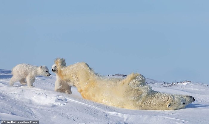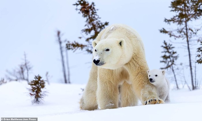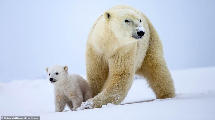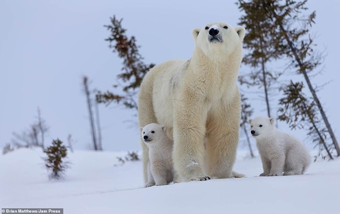 Ее запечатлел Томас Мангельсен, который наблюдает за медведицей полтора десятилетия. Молодая мама уже в почтенном возрасте, ей 24 года. Как обычно, она заметила фотографа, впрочем, как и обычно медведица довольно-таки спокойна. Она всегда сдержанно реагирует на людей.