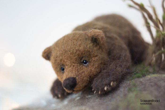 Мишка в берлоге сделан Натальей Оридорога @screamroad для проекта "Шерстяная Битва" в удивительной технике сухого валяния, которая позволяет создавать скульптуры в любом стиле, размере, цвете.