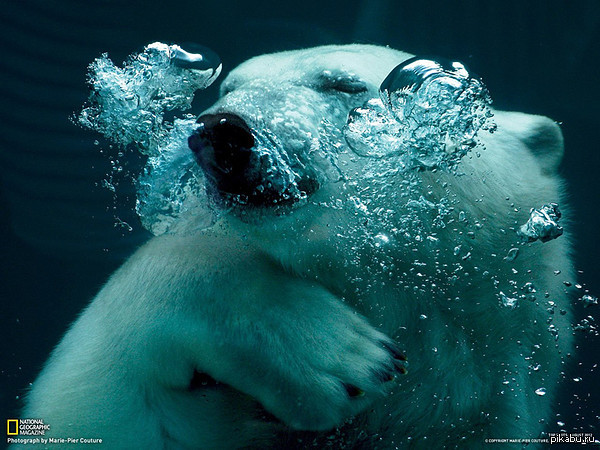 Подборку купающегося белого медведя подготовила я. К сожалению авторов фотографий не знаю.
